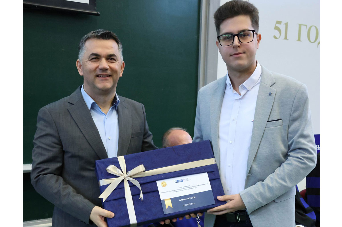 BANJA LUKA – Udruženje ekonomista RS SWOT nagradilo je laptopom Danila Rogića, najboljeg studenta na studijskom programu “Poslovna informatika” Ekonomskog fakulteta Banja Luka. Nagradu najboljem studentu je uručio Saša Grabovac, izvršni direktor Udruženja ekonomista RS SWOT. Udruženje ekonomista RS SWOT poklonom za najboljeg studenta, prije svega želi pokazati da neko prepoznaje zalaganje dobrih studenata i […]